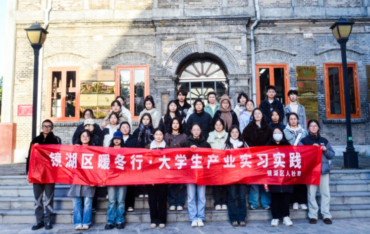 1127日,安徽商貿職業技術學院“就在蕪湖”服務站來園開展鏡湖區暖冬行·大學生產業實習實踐活動,高校30余名大學生實地了解園區文化歷史與產業發展情況,感受園區創業氛圍。