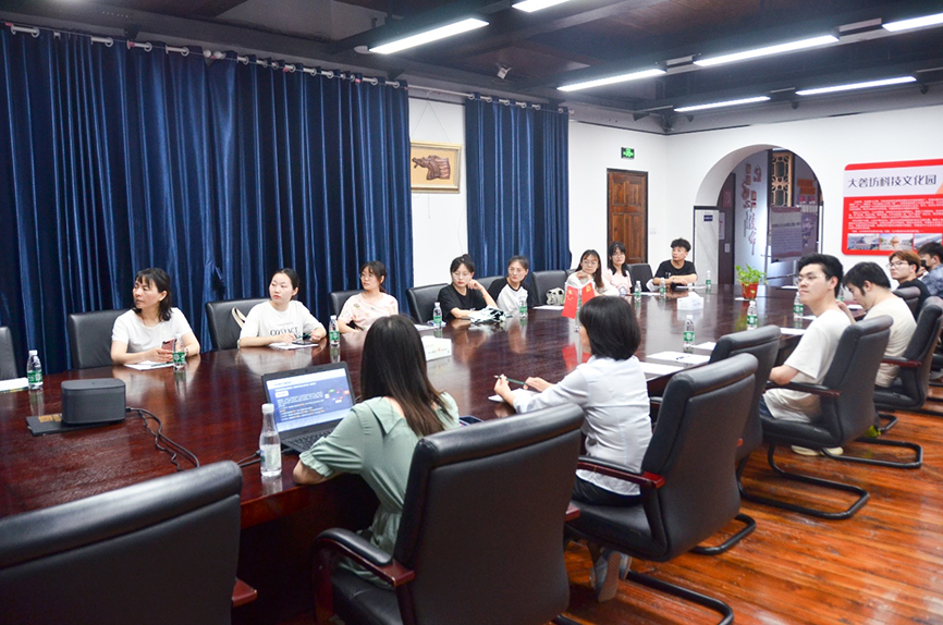 隨后,園區開展產學研習交流會,會上向調研組系統的介紹了園區文化歷史、產業分布、運營特色等,并針對學生的疑問進行解答。
