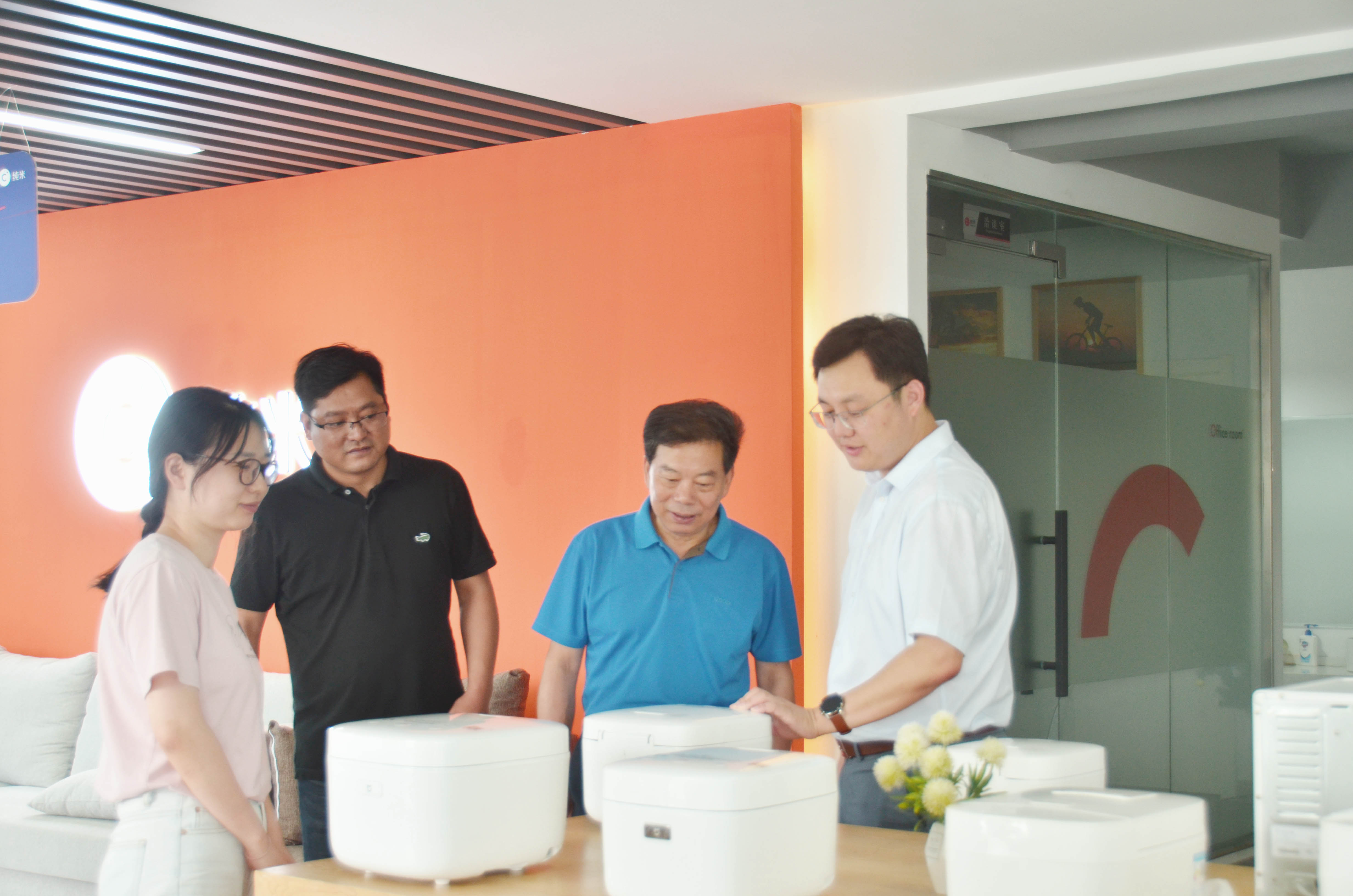 會后,袁院長一行參觀了百年益新面粉廠和園區國科生物、純米科技、訊飛幻境等企業。他認為,企業在創新創業中具有技術優勢,希望能與園區開展更深層次的對接交流活動,依托工業設計大賽、工業設計產業聯盟等平臺,能夠將學生就業創業、創新實踐等工作融入其中,真正做到企業需要什么人才,學院就培育什么人才。在園區正在舉辦的工業設計大賽方面,袁院長指出,鏡湖杯專項賽提出的“企業命題”式做法,讓企業能夠直接對接學生,使需求與設計更好結合,有助于學生的創意真正落地轉化,讓優秀人才能夠得到發掘和培養。